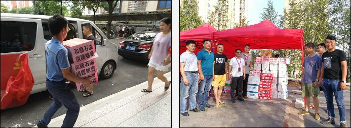 在这期间,我们还有无数的同事用各种力量默默与洪水抗争,只为守护和顺家园,洋湖一号物业同事们日夜不间断抽水,排查险情,只为保障业主的人身和财产安全;总部大楼主管欧阳雨鹏两天两夜坚守和顺大厦,每2小时查看一次大楼排水情况,保证总部大楼的安全;和顺山庄65岁的赵德均在雨中堵水、泄洪,全身湿透几回;物流部同事们克服路途障碍,坚持奋战,只为及时保供,仓储部同事们也是连夜奋战,排除铁路周围险情,保障畅通;加油站同事们大雨中不停巡查、抽水排水,衣服湿了又干、干了又湿;安委会胡灿明、朱佩姿不停奔赴在各个现场、检查指导抢险救援工作;零管中心孙洲不顾路途危险,奔忙在各个加油站之间,不停给予大家鼓励和援助,两天两晚不眠不休……在严峻的防汛抢险工作面前,和顺家人们没有任何怨言,席地而睡、风雨中抗战,坚守住了每一个岗位。在最关键的时刻,正是大家的努力抗战确保了员工的人身安全,确保了期间未发生一起安全事故,确保了公司的财产安全。